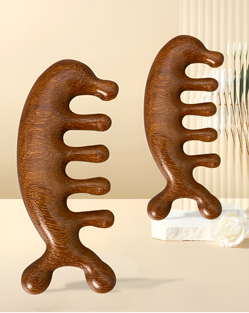 นวดไม้จันทน์หวีผม Meridian หวีผมหวีนวดตา