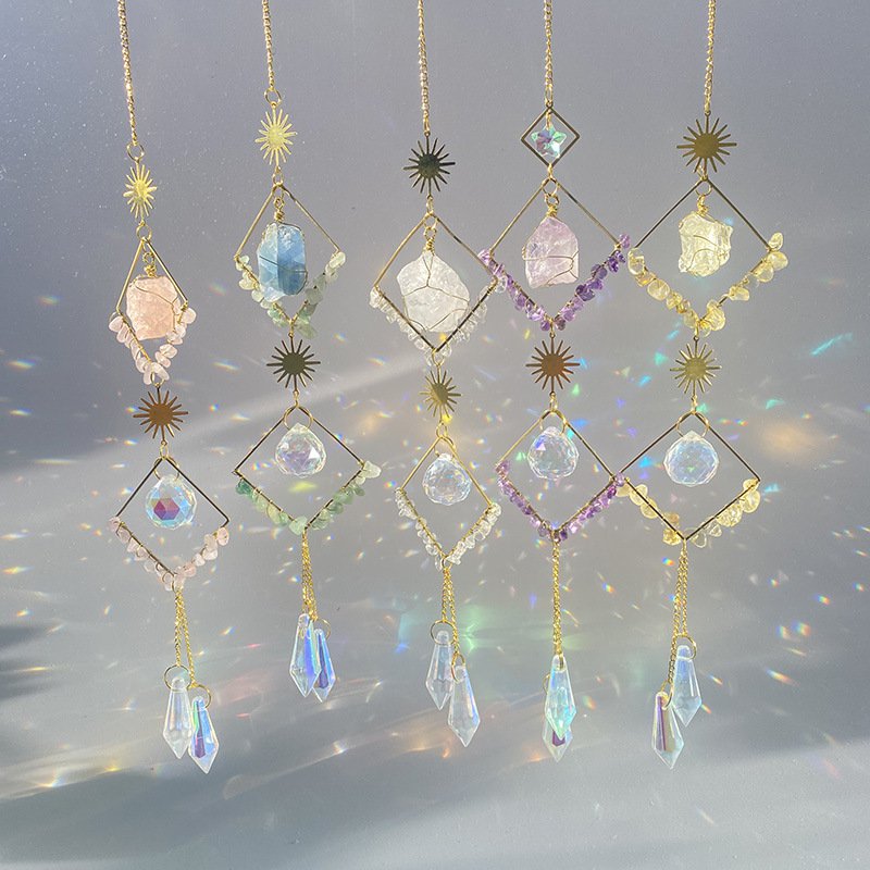 กระดิ่งลมดวงจันทร์หินดิบธรรมชาติ